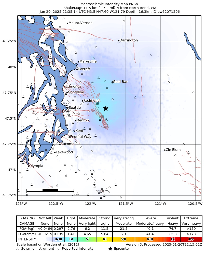 WHATCOM COUNTY, Wash. — Seismologists with the Pacific Northwest Seismic Network (PSNS) reported 2 earthquakes were detected today, Monday, January 20, 2025, about 70 miles south of Whatcom County.