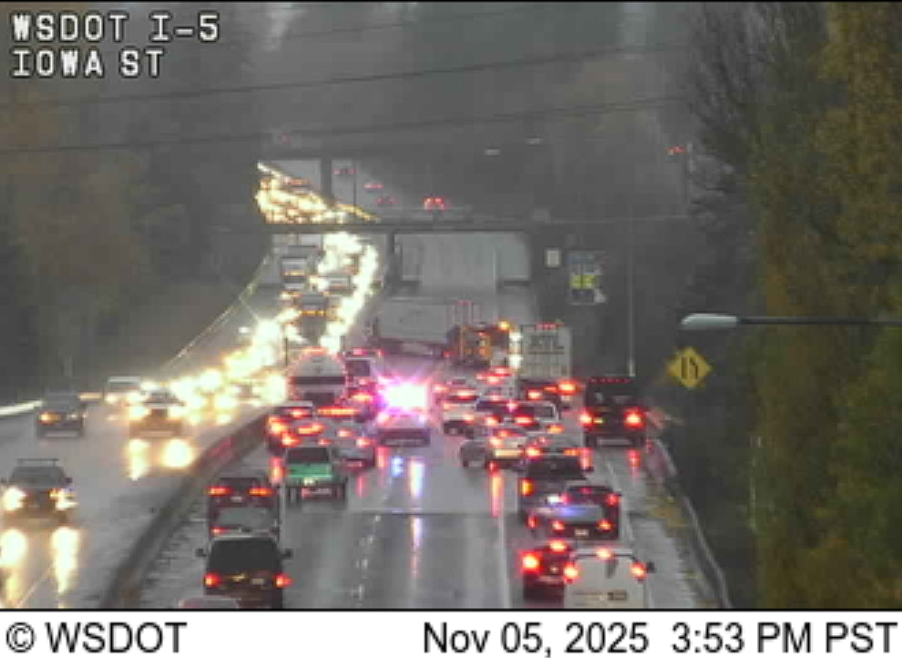 BELLINGHAM, Wash. — First responders were dispatched to the northbound lanes of I-5 north of the Iowa Street on-ramp about 3:45pm on Wednesday, November 5, 2025, due to reports of a semi-truck crash that was blocking all lanes.