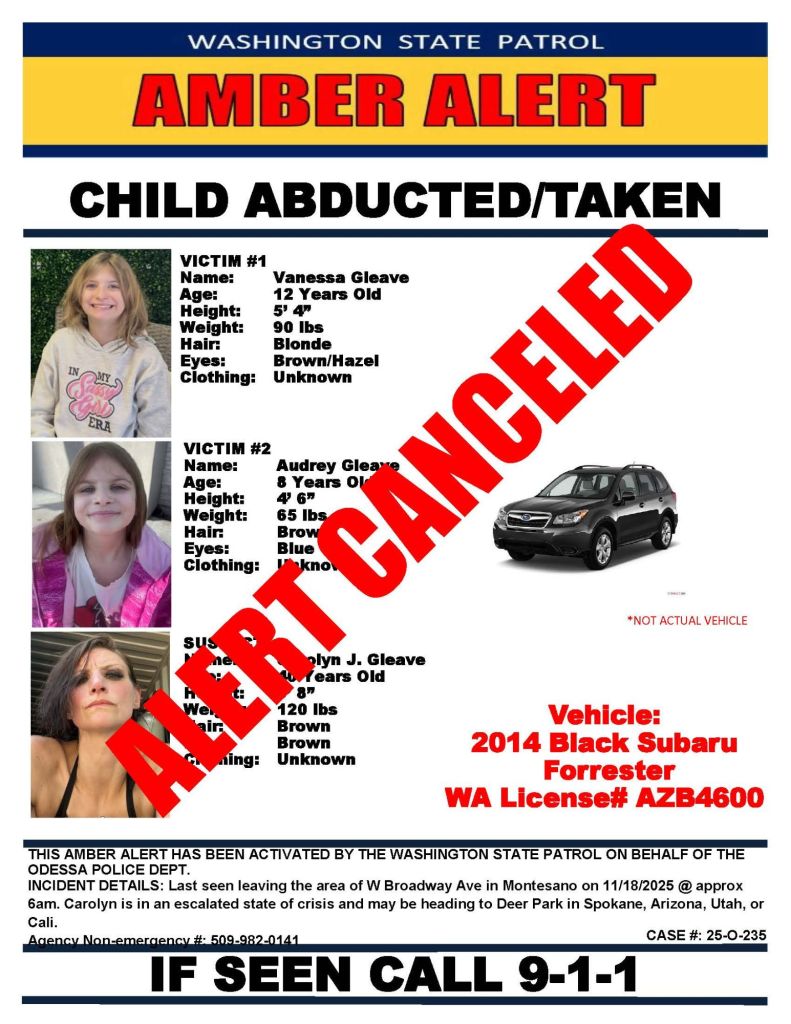 Canceled – Amber Alert: Abducted/taken children from Grays Harbor, WA By Staff on November 18, 2025 3:15pm Subject located Share this with friends/family via: Share on Facebook (Opens in new window) Facebook Share on Bluesky (Opens in new window) Bluesky Share on X (Opens in new window) X Share on Reddit (Opens in new window) Reddit Share on Nextdoor (Opens in new window) Nextdoor Share on Threads (Opens in new window) Threads Share on LinkedIn (Opens in new window) LinkedIn Share on Tumblr (Opens in new window) Tumblr Share on WhatsApp (Opens in new window) WhatsApp Print (Opens in new window) Print Email a link to a friend (Opens in new window) Email Discover more from Whatcom News Subscribe to get the latest posts sent to your email. Type your email… Subscribe