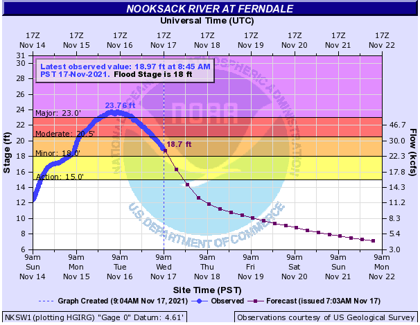 FERNDALE, Wash. — Officials with the City of Ferndale have rescinded an evacuation advisory for businesses and residences south of Main Street between 4th Avenue and the Nooksack River due to lessening flooding concerns.