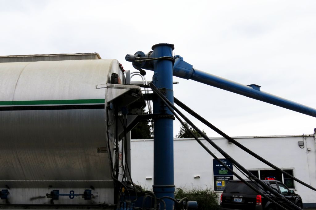 bundles of wires could be seen caught in a crossarm mechanism at the back of a feed transport trailer at nw and axton road 2018-05-04