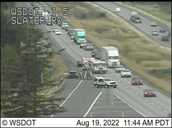 Traffic was backed up in the southbound lanes about 2 miles while first responders had the right lane blocked and the off-ramp to Slater Road was closed.