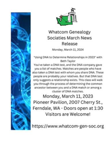 Monday, March 11th, at 1:30pm at the Ferndale Pioneer Pavillion Community Center.