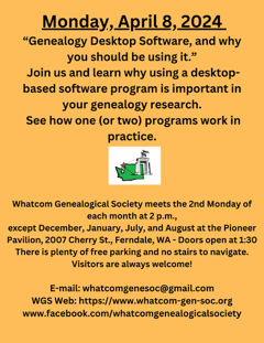 2pm on Monday, April 8th at the Ferndale Pioneer Pavillion Community Center.
