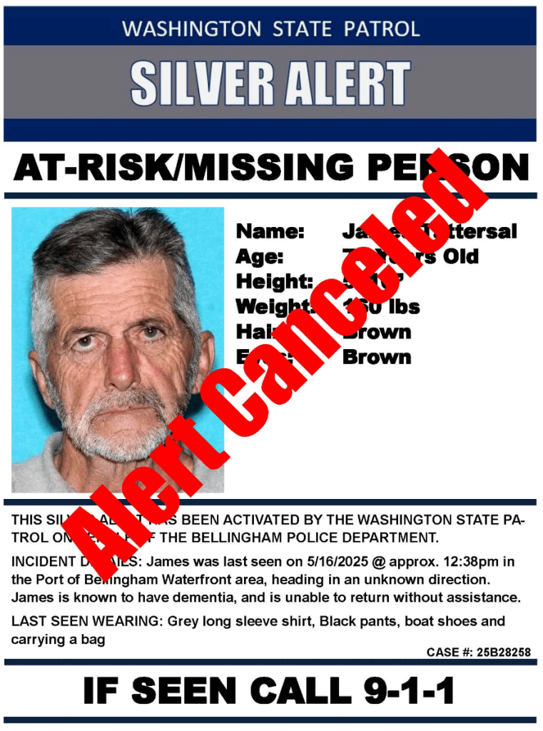 Last seen May 14, 2025, leaving Bellis Fair Mall in Bellingham.
