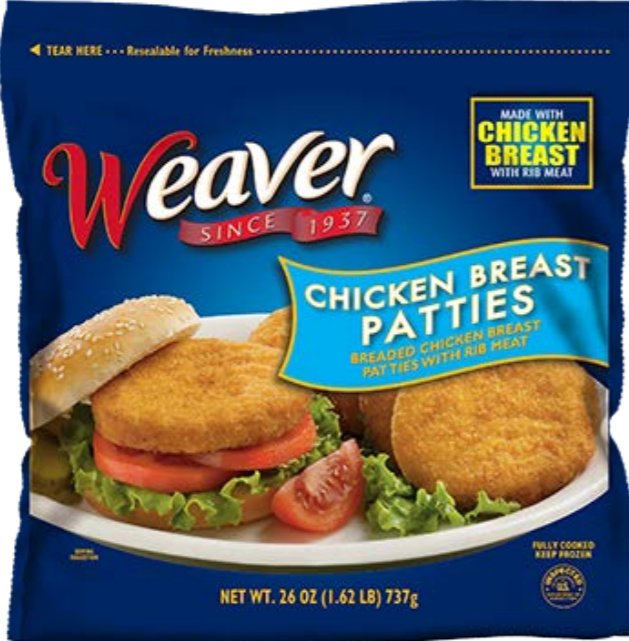 Tyson Foods is recalling approximately 39,078 pounds of Weaver brand frozen chicken patty product.
