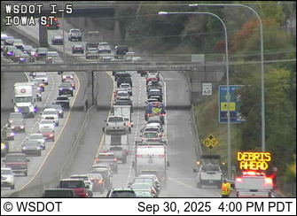 Minutes after reports of concrete in the lanes were received, report of a crash was also received.