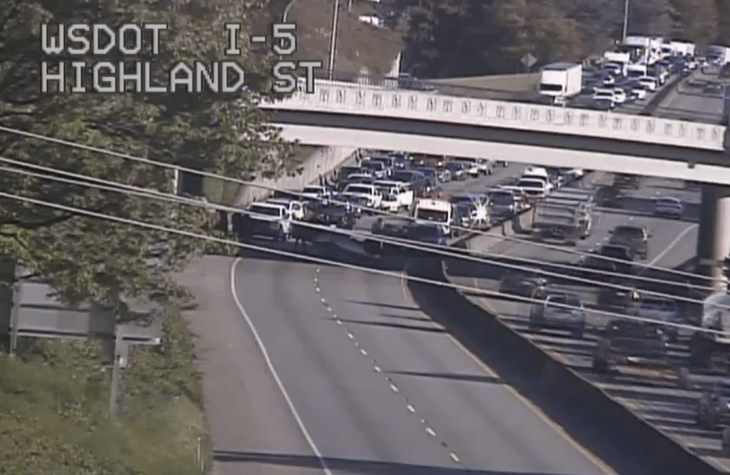 As of 6pm, WSDOT advised, "This could take a while to clear. Use alternate routes and expect delays."
