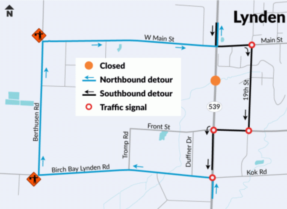 A signed detour will direct travelers around the closed section of road.