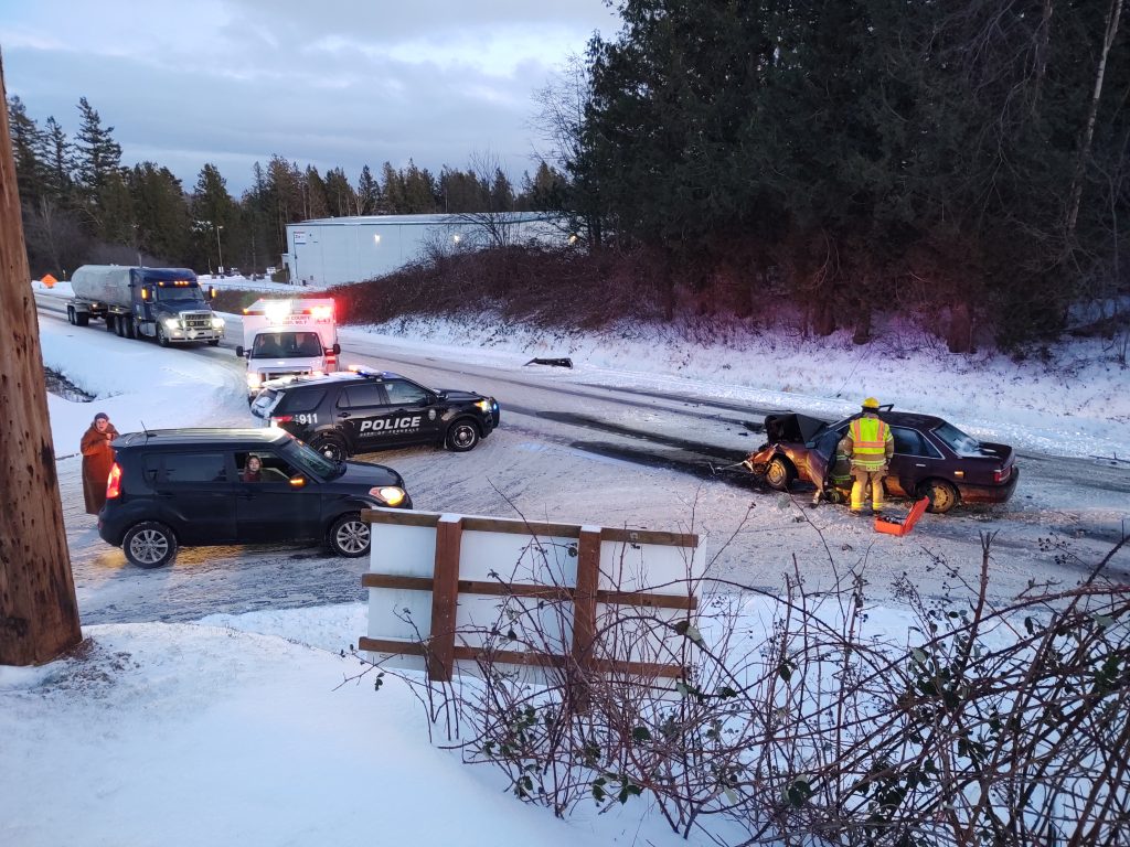 While snow was just beginning to accumulate around Ferndale, it was causing problems south of Bellingham.