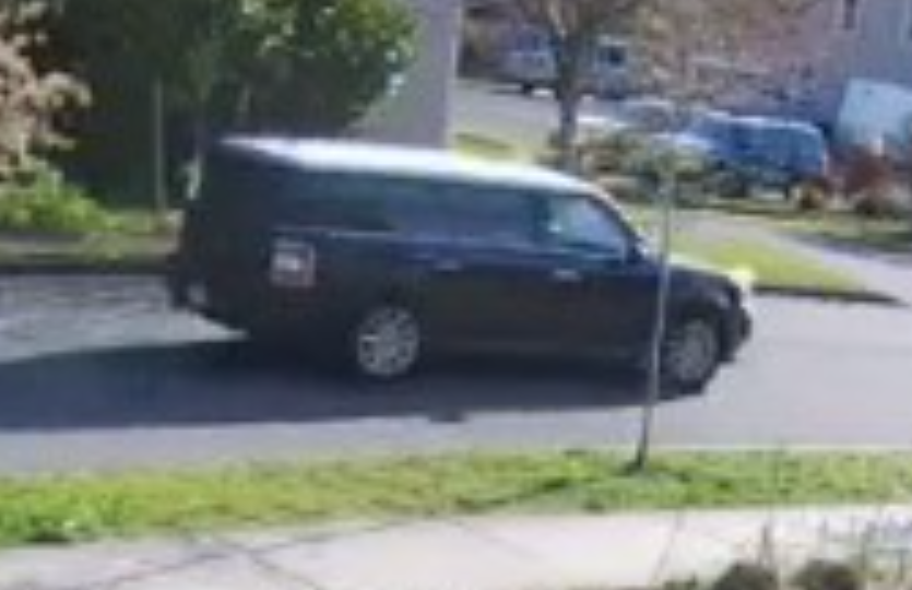 The suspect vehicle was seen on nearby security video heading toward and away from the reported robbery.