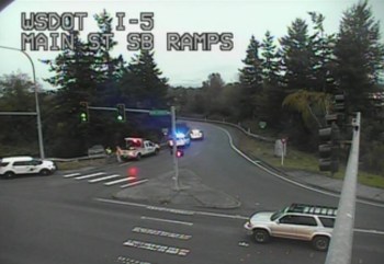 Harding said their investigation showed the Ford had just exited southbound I-5 and continued across Main Street until colliding with the guardrail. It ended up going up and over the guardrail. About 5 to 6 guardrail posts and about 20 feet of guardrail were damaged.