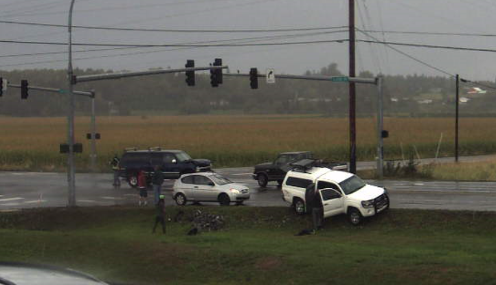 With two vehicles of four vehicles stopped in the roadway were in the center of the intersection and two others off to the side, traffic continued to drive through the scene. Once law enforcement and aid units arrived the road was reduced to one lane east of the intersection.
