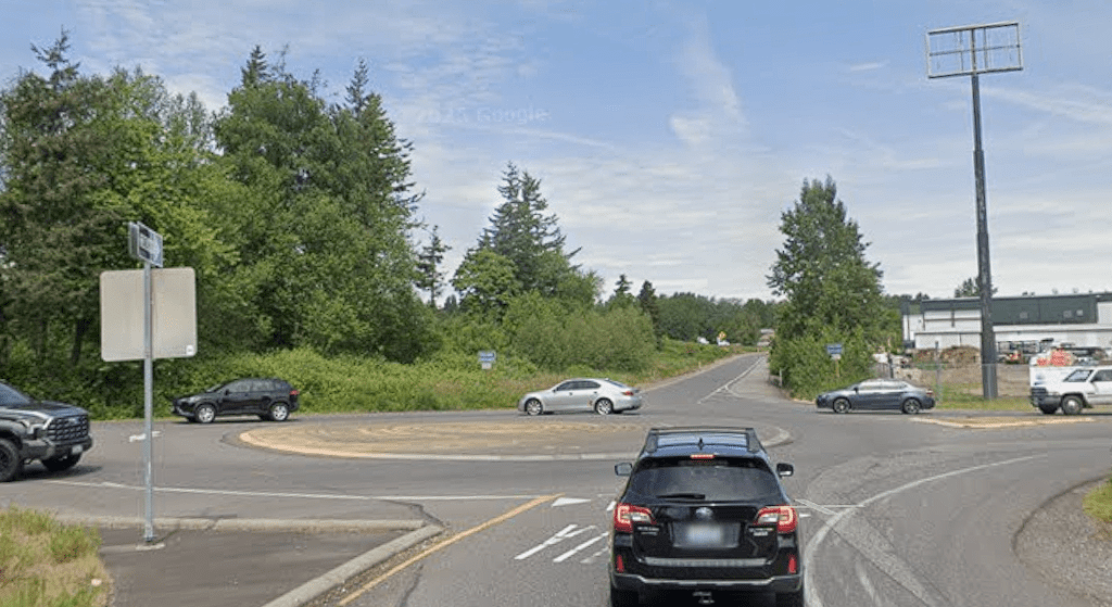 A relatively new compact single-lane roundabout built in 2018 at the I-5 northbound on- and off-ramps and Portal Way has been blamed for a recent increase in northbound I-5 blocking and often injury crashes in the area immediately south of the Portal Way off-ramp.