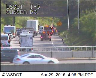 As is currently visible looking at the WSDOT I-5 traffic cameras, traveling either direction through Bellingham on I-5 right now is no fun and should be discouraged.
