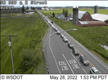 Long lines waiting to make the crossings at Lynden and Sumas were visible on WSDOT traffic cameras.