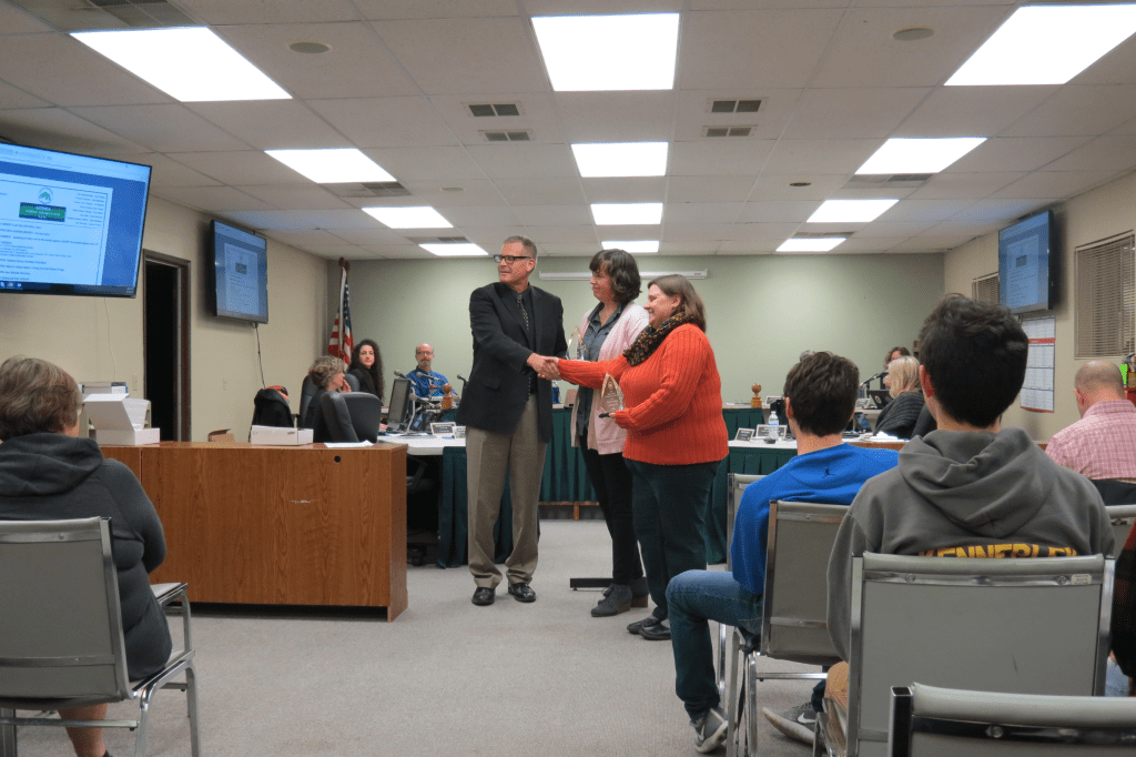Crissy Ford and Rachel Pringle receive Ferndale Mayor’s Awards for Outstanding Citizenship during a City Council meeting 2018-02-05