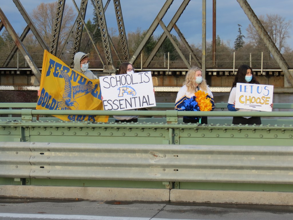 Bryan said their protest was a result of “asking school admin why we cannot return hybrid like Lynden High School is next week and having our questions ignored.”