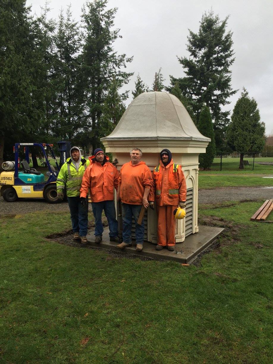 ferndale public works crew poses with the newly positioned dome from FHS at pioneer park 2015-12-23 Discover more from Whatcom News Subscribe to get the latest posts sent to your email. Type your email… Subscribe Previous Image Next Image