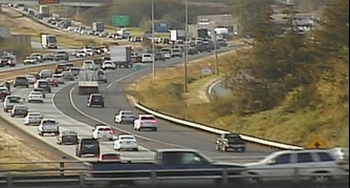I-5 traffic viewed from Main Street during a morning commute (August 30, 2016). Photo: WSDOT traffic camera