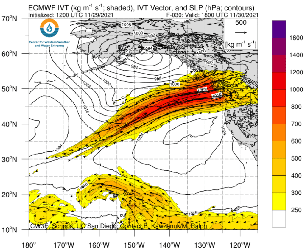 The next round of persistent rainfall will reach Western Washington late tonight into Tuesday as a weaker AR affects the area once again. Current ensemble guidance suggests lighter rainfall accumulations than what we experienced over the weekend.National Weather Service Seattle office forecasters (November 29, 2021)