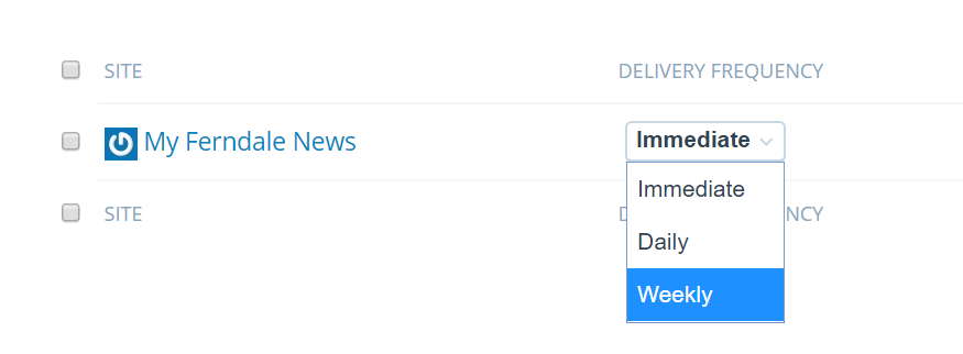 Anytime you want to change between IMMEDIATE, DAILY or WEEKLY delivery or the day/time of delivery, simply click on the “Manage Subscriptions” link found at the bottom of any of the emails.