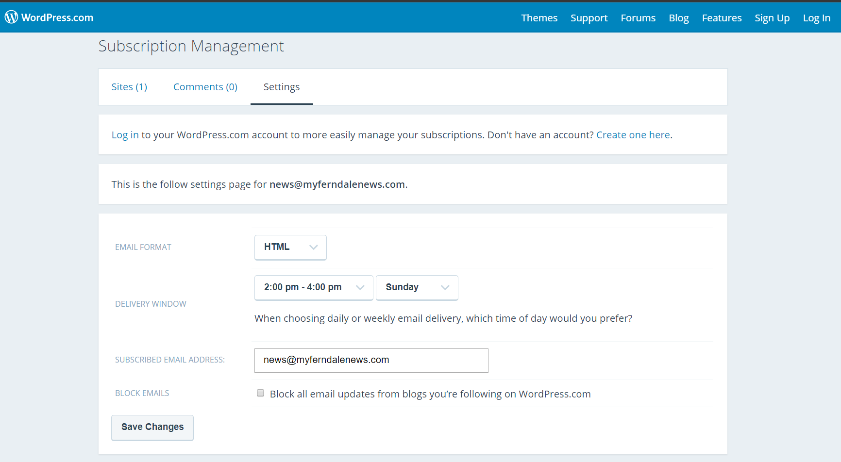 Click “Subscription Dashboard” at the bottom of the confirmation email to choose or change the delivery frequency to what you want. That will launch a page similar to the following.