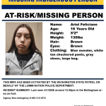 Missing person out of Bellingham By Staff on March 2, 2026 7:18am Share this with friends/family via: Share on Facebook (Opens in new window) Facebook Share on Bluesky (Opens in new window) Bluesky Share on X (Opens in new window) X Share on Reddit (Opens in new window) Reddit Share on Nextdoor (Opens in new window) Nextdoor Share on Threads (Opens in new window) Threads Share on LinkedIn (Opens in new window) LinkedIn Share on Tumblr (Opens in new window) Tumblr Share on WhatsApp (Opens in new window) WhatsApp Print (Opens in new window) Print Email a link to a friend (Opens in new window) Email Discover more from Whatcom News Subscribe to get the latest posts sent to your email. Type your email… Subscribe