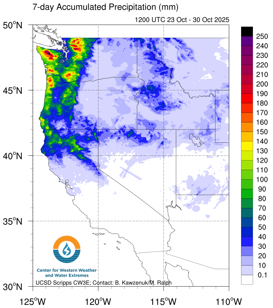 A moderately strong atmospheric river will impact western Washington Friday through Saturday night, bringing moderate to heavy rainfall to the region. Mean rainfall forecast remains between 2 to 4 inches with locally 5+ inches, with the heaviest rain on track to fall over the Olympic Peninsula and over the northern and central Washington Cascades.