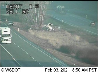 About 8:30am, WSP responded to another rollover crash on I-5 near Birch Bay-Lynden Road. This was reported to be non-injury. There was another non-injury rollover involving a trailer that detached from the pickup pulling it in the area of Zell Road and I-5.