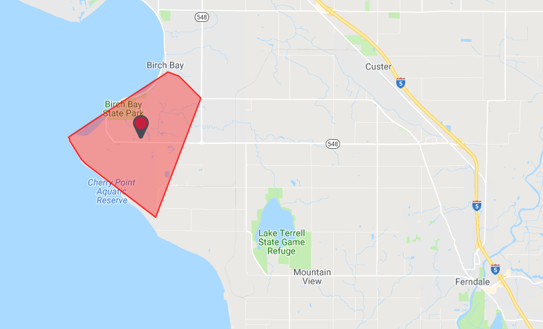 The outage stretched from Vista Drive north from Aldergrove Road to Custer and west to Birch Bay and south to Mountainview Road and N Star Road.