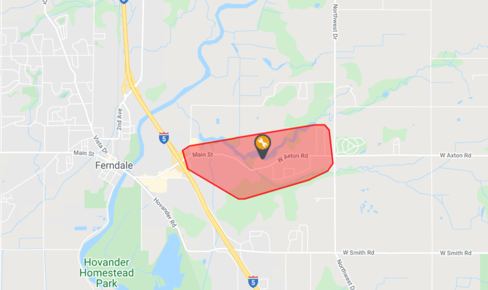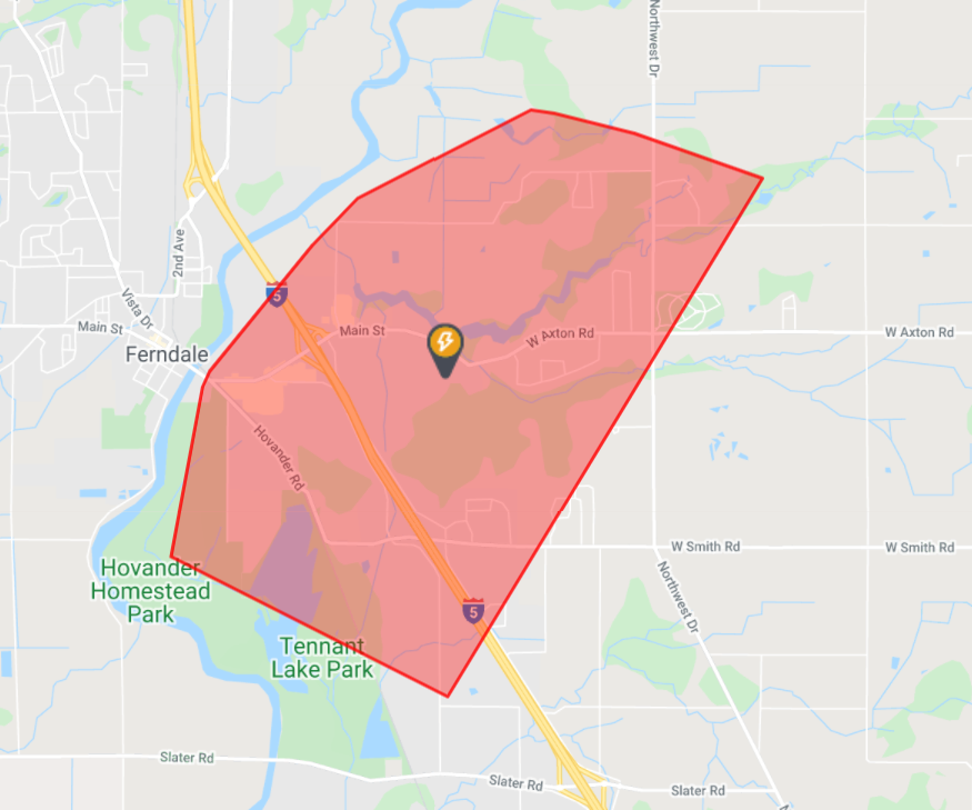 About the same time, over 1,000 Puget Sound Energy customers in Ferndale lost power and electronic traffic signals went dark along Main Street east of the Nooksack River.