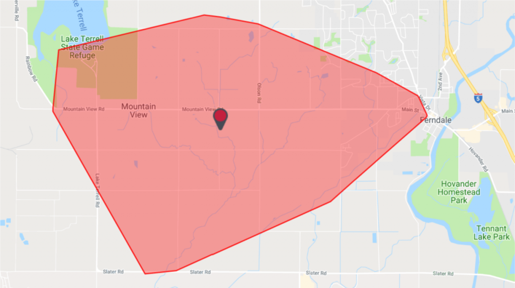 From the traffic lights downtown at 4th Avenue and Main Street west to Lake Terrell and as far south as Slater Road, 1843 residences and businesses lost power for about 40 minutes morning between 9am.