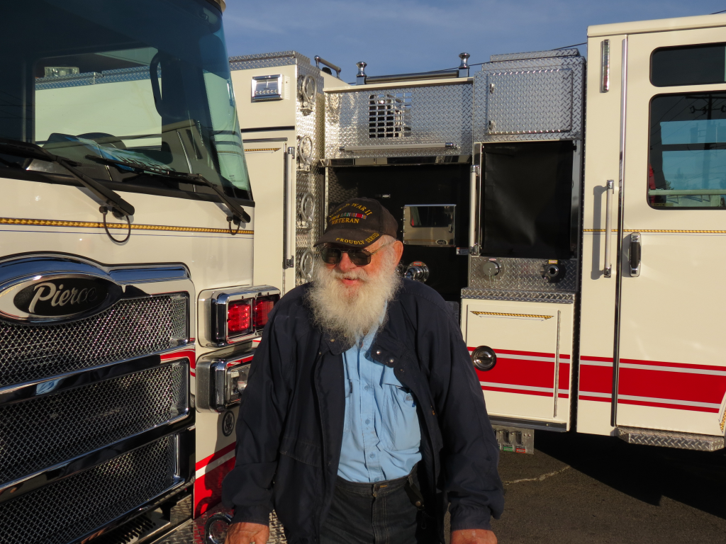Retiring WCFD7 Commissioner Gerald Metzger tours 2 new pumpers before Metzger’s last meeting 2017-12-14