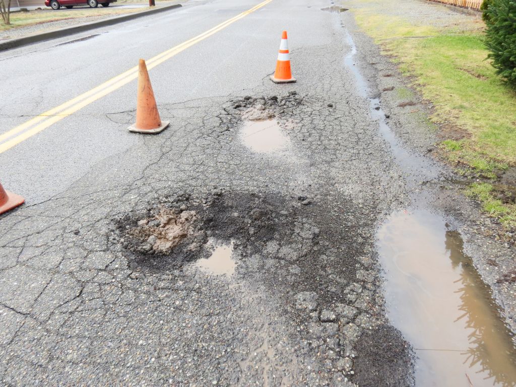 road surface damage on Ferndale Terrace between Seamount Drive and Birch Drive 2