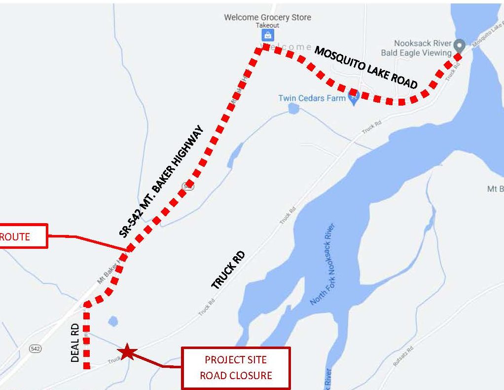 E Hemmi Road in Everson will be closed to through traffic between Hannegan Road and Noon Road beginning July 14th. This closure will allow for reducing the risk of flooding on E Hemmi Road. The work involves raising 1,100 feet of E Hemmi Road that is prone to flooding and replacing a 5-foot diameter culvert at Tenmile Creek with a 16.75-foot span culvert.