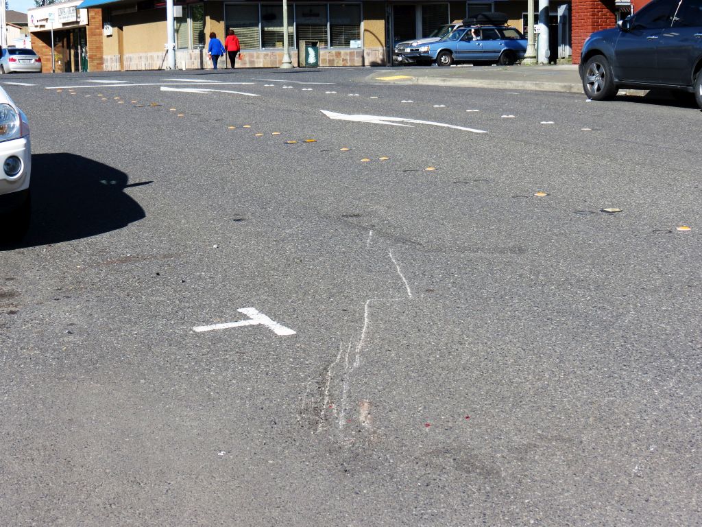 runaway boat trailer left marks on the road at the point where it struck two parked cars 2017-05-07