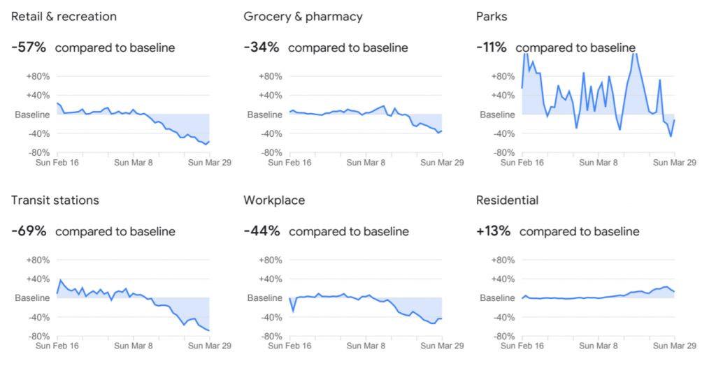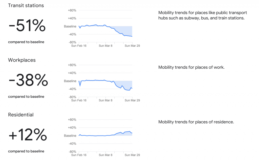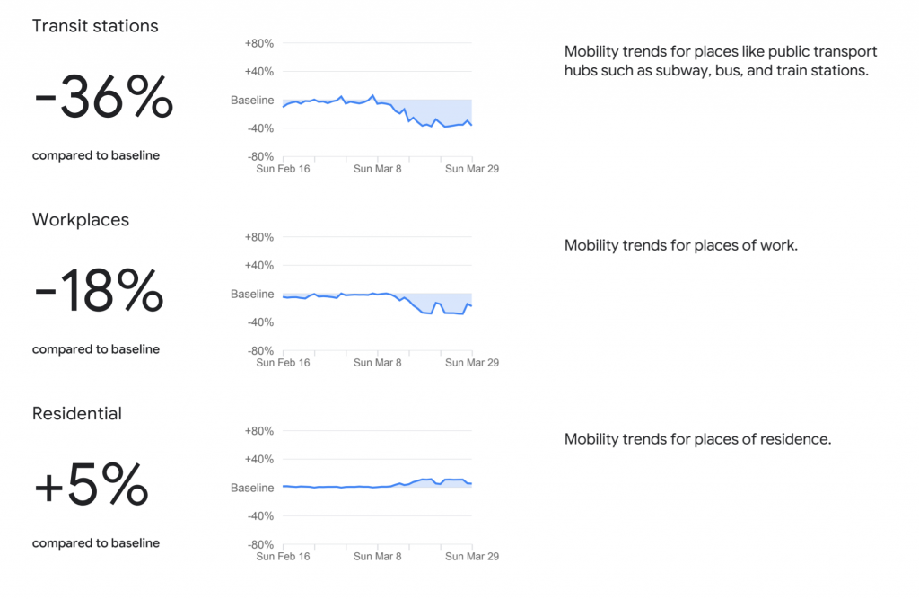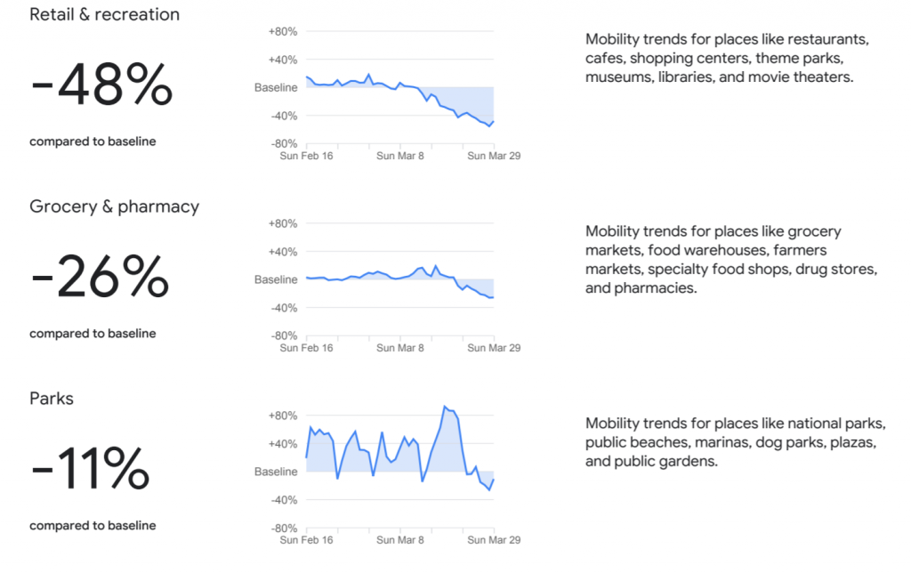 Google today, April 3rd, released reports based on people’s movements during the COVID-19 pandemic which use anonymized location data collected from cellphones to determine trends in habits like going to the store, work, parks and staying home.
