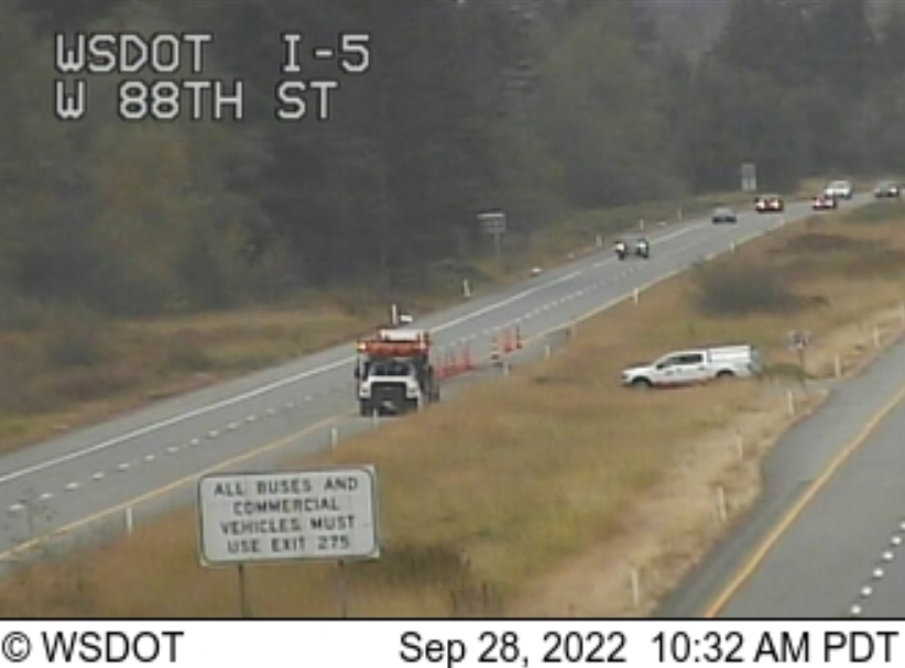 According to WSDOT cameras, traffic was able to get through the crash scene via the right shoulder.