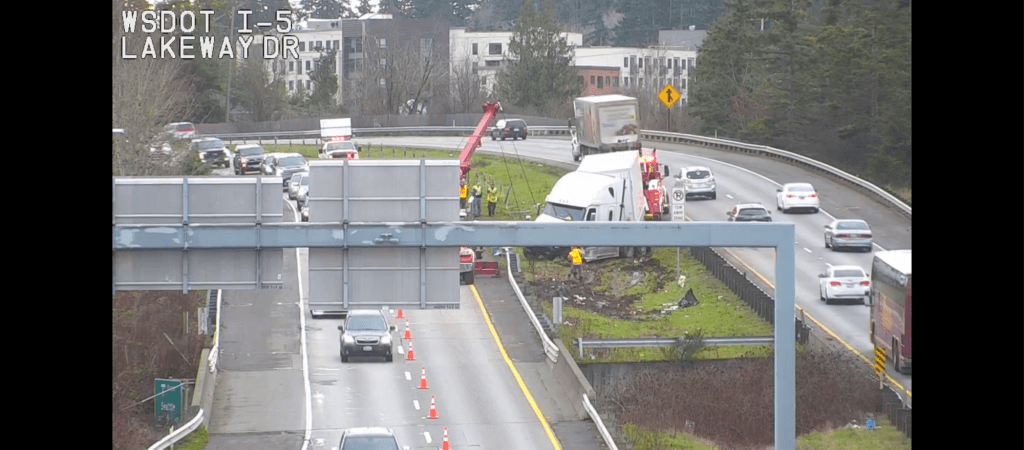 Update 2pm – officials with the Washington State Department of Transportation say traffic impacts are expected to continue through the area and a 2-mile traffic back-up in the northbound lanes had formed.