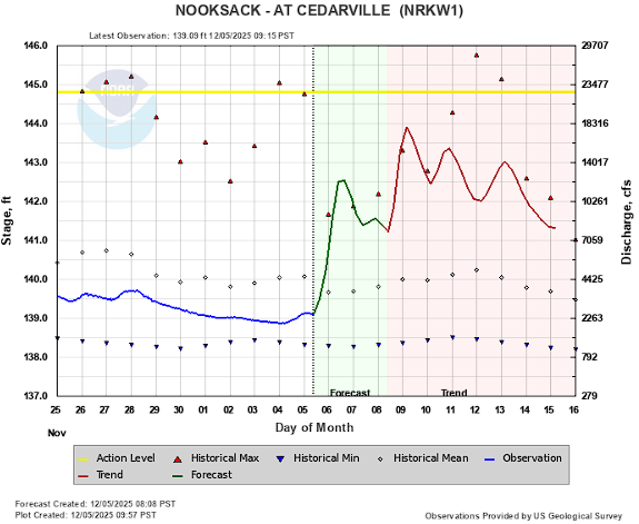River level forecasts can change frequently so motorists and property owners are advised to monitor the Nooksack River level forecast.