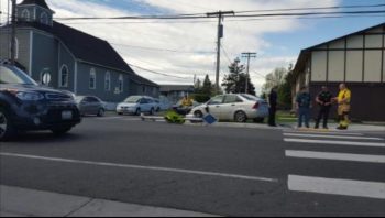 sheared off pole can be seen on the ground after car crash 2017-05-23 photo from reader