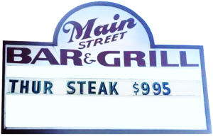 steak nite ext reader board Main Street Bar & Grill 300x