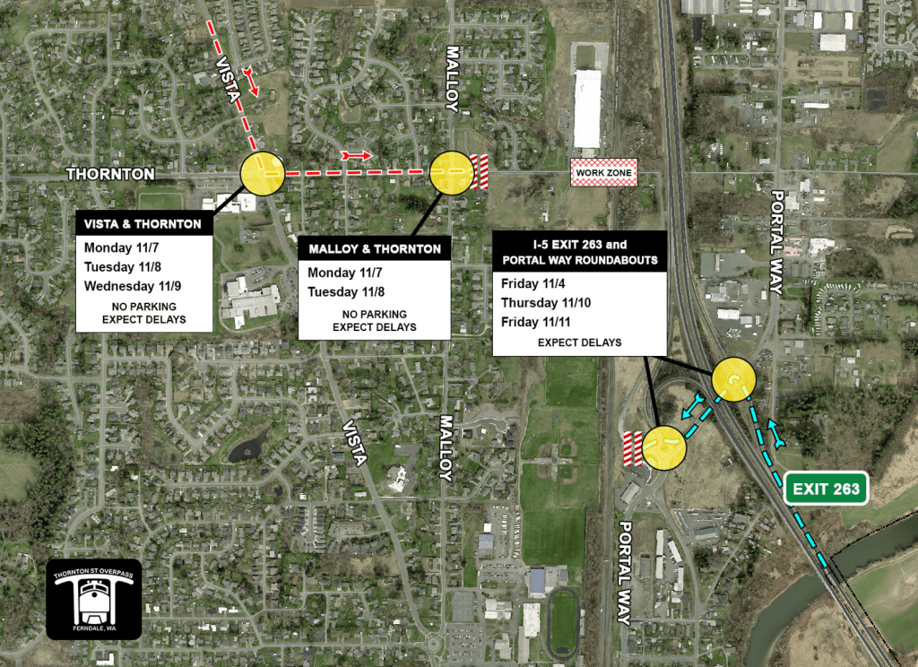 Intermittent impacts to traffic near the I-5 Exit 263 Roundabout and the Portal Way roundabout as girders are delivered to the worksite.