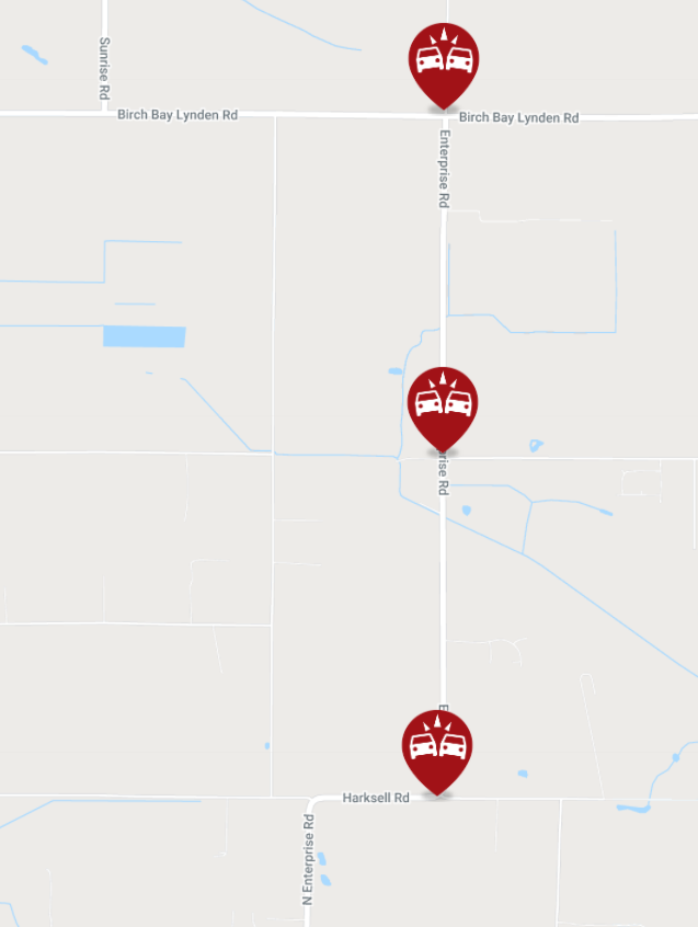 FERNDALE, Wash. — First responders were dispatched about 4:30pm today, January 9th, to 3 locations on N Enterprise Road due to reports of separate crashes. Aid crews were dispatched as well.