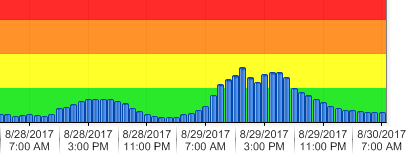 A cooler marine air mass spreading inland appears to have cleared the visible smoky haze that appeared in the area yesterday. As a result, air quality has returned to the GOOD range. But the east-southeast winds have the potential to pull smoke back into the area.