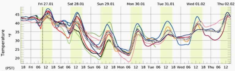 Error, group does not exist! Check your syntax! (ID: 11)[A] Cool air mass moving into Western Washington behind the trough with Fraser [Valley] outflow winds over the Northwest Interior. Dry and cool Sunday and Monday with upper level ridge offshore. Warming trend by mid week as ridge weakens. National Weather Service (January 27, 2023)
