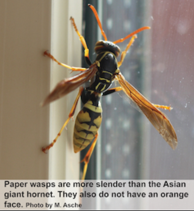As reported earlier, they were contacted by a property owner east of Blaine who had photographed an AGH seen repeatedly visiting a paper wasp nest. That property owner put up a bottle trap and soon had captured a AGH. They then contacted WSDA and an official, who happened to be nearby, came out to visit the property. While the official was onsite, an AGH was seen flying in the area and was able to be captured alive with a net.