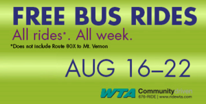 WTA – free bus rides august 2015 300x Discover more from Whatcom News Subscribe to get the latest posts sent to your email. Type your email… Subscribe Previous Image Next Image