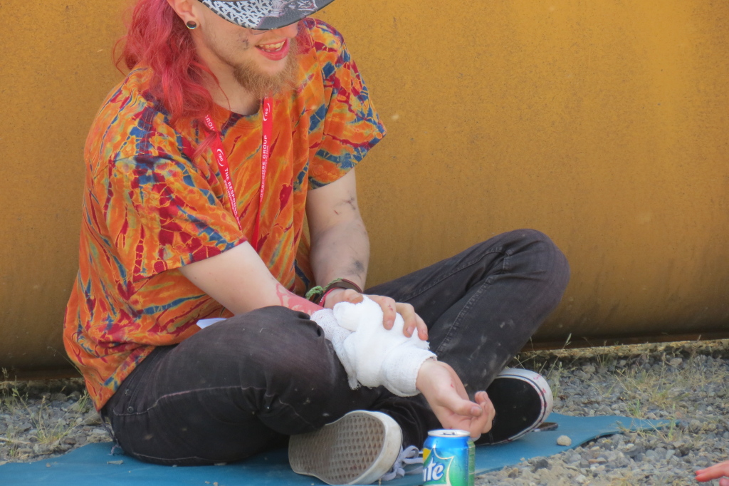 yellow rhino victim’s mock injuries after receiving first aid 2